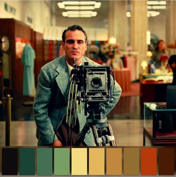 When we watch movies, we can easily become awe-struck at all the beautiful colors in the set design and color grading process. Finding the exact palettes for that particular film is easily searchable. Just by searching Pinterest for “film color palettes”, you get results like this: