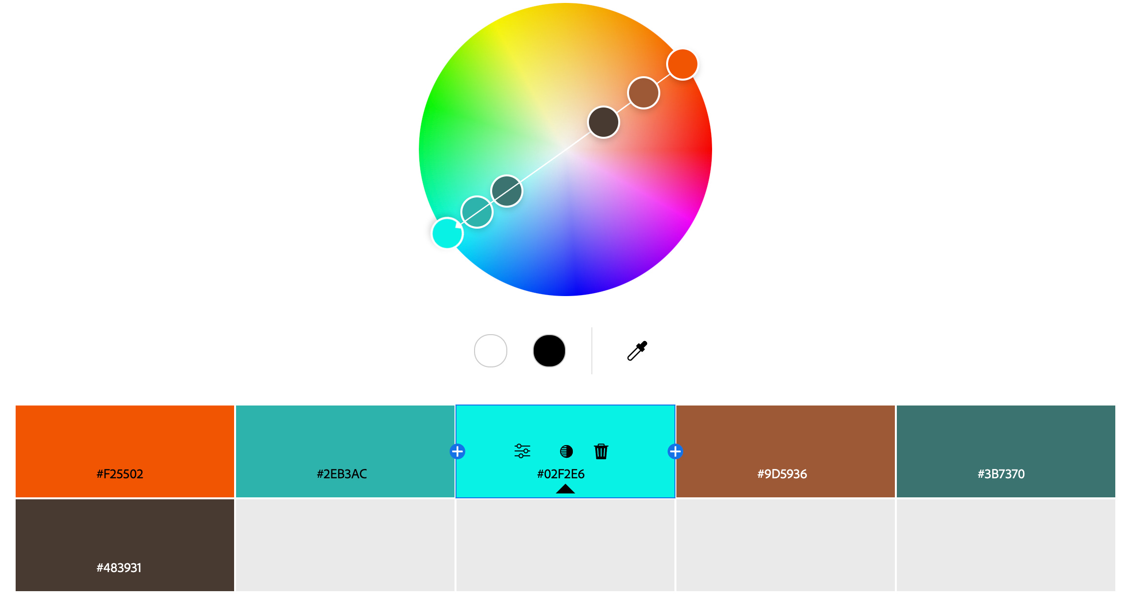 What you do is simple: You pick a starting color on the color wheel and Adobe will highlight and show you all various colors you can use, to complement your choice.